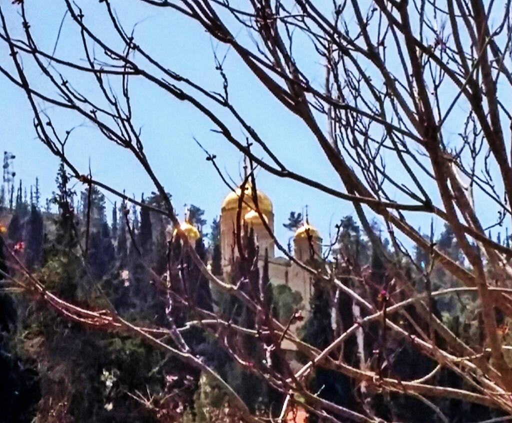 Золотые купола Горненского монастыря сверкают на весеннем солнце.