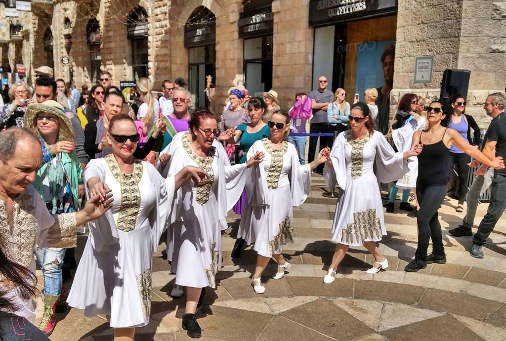 Днем, за несколько часов до наступления субботы, волонтеры кружков народного танца развлекают людей на центральной улице зажигательным хороводом. Танцуют все!