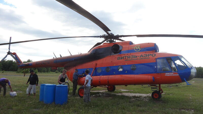 Но вот мы возвращаемся в Козыревск. Там нас ждет вертолет. В кабине пилота горит зеленая спиралька - популярное местное средство от комаров. Не успеваю удивиться, зачем она пилоту, потому что внизу уже плывут сказочной красоты сопки и озера.