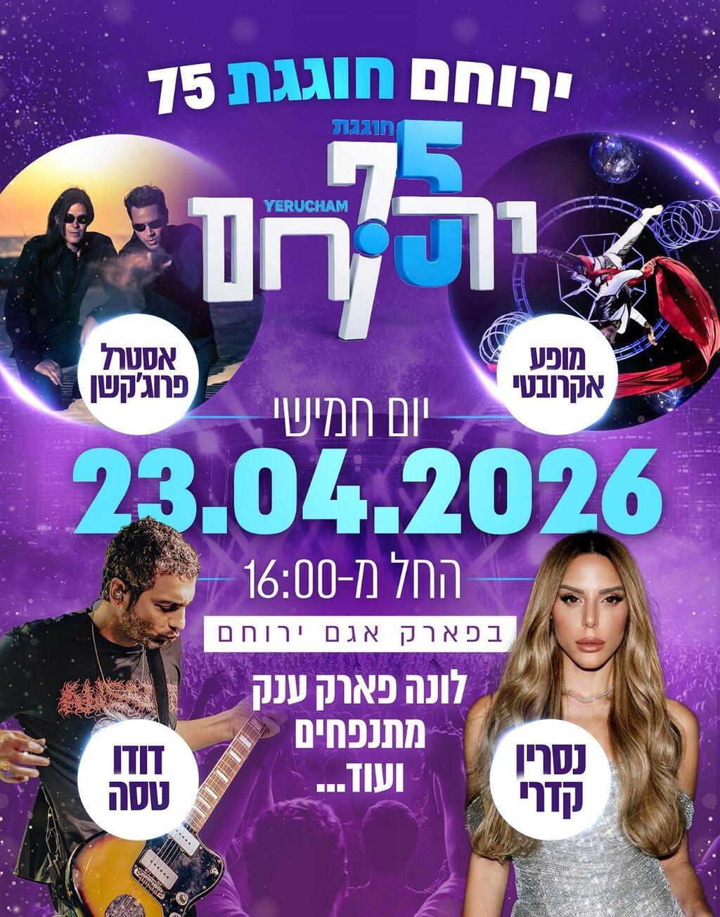 ראש העיר נילי אהרון: "השנה, חגיגות 75 השנים לירוחם מתקיימות בסימן הצדעה לדור המייסדים. 75 שנים הן הרבה מעבר לציון דרך. ירוחם של היום מביטה קדימה אל שנים של צמיחה, בנייה והתחדשות. אני מזמינה את כולם להגיע, להיות חלק ולחגוג יחד איתנו".