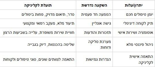 עלות מול תועלת של מערכת לניהול קליניקת אסתטיקה ומרפאות של תפעולית
