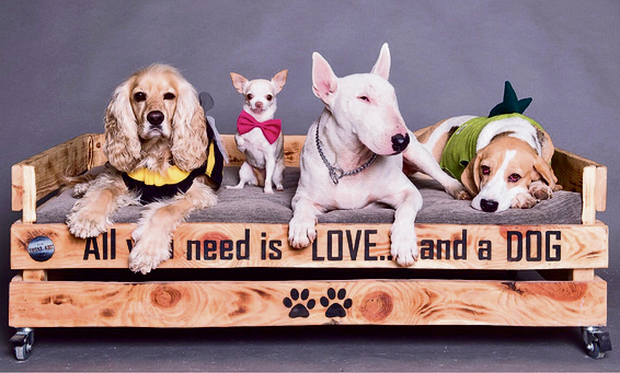 בכלל, מיטות לכלבים הן מוצר הדגל של הסטודיו ונראות כאן ממש כמו מיטות לילדים - קטנות, חמודות ומעוצבות בהרכבה אישית. אנשים בוחרים את הדגם, האם יהיו לו מזרן או כרית, מה יהיה צבע העץ שתמיד יגיע בוואש, כי הקליינטים שורטים את הרהיט. היצירתיים במיוחד מוסיפים את שם בעל החיים על הדופן, או משפט שאהוב עליהם. אין לטוטאל ארט גבולות ולאחרונה זכה גם דני ענק למיטה משלו, בטכניקה שבה בונים מיטות לאנשים שמנים. מי שדוגם את כל העיצובים ובוחן אותם פיזית הוא ביצ'ר, דוגמן הבית, ולפעמים הרעיונות בכלל באים בזכותו. כאשר שלומוביץ שם לב שהאוזניים הארוכות של ביצ'ר תמיד נרטבות כשהוא שותה מהכלי, מיד יפנה לעצב כלי מים המיועד לכלבים בעלי אוזניים ארוכות.