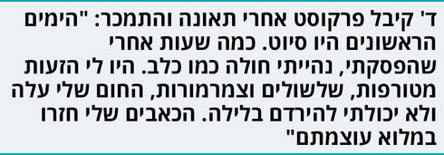 ד' המשיך לקבל פרקוסט במשך כמה שבועות, במינון הולך וגדל, עד שהועבר לשיקום. "שם הבהירו לי חד־משמעית שאני חייב לעבור לתרופות יותר קלות, אחרת אהפוך מפצוע - למכור", הוא אומר. "הימים הראשונים היו סיוט. כמה שעות אחרי שהפסקתי נהייתי חולה כמו כלב. היו לי הזעות מטורפות, שלשולים וצמרמורות, החום שלי עלה ולא יכולתי להירדם בלילה. נוסף לכך, הכאבים שלי חזרו במלוא עוצמתם. אחרי כמה ימים של סבל, שבמהלכם הצוות פשוט סירב לתת לי את התרופה הקודמת - ובזכות תמיכה בלתי פוסקת של אשתי, שלקחה חופש מהעבודה ולא זזה ממני - המצב השתפר וחזרתי לעצמי. בדיעבד, כששמעתי מה קורה לאנשים שלא הפסיקו בזמן, אני מודה לאלוהים שהצלחתי לצאת מזה. היה לי מזל גדול".