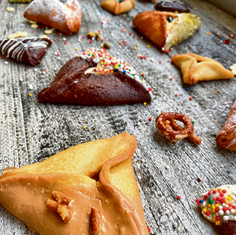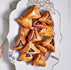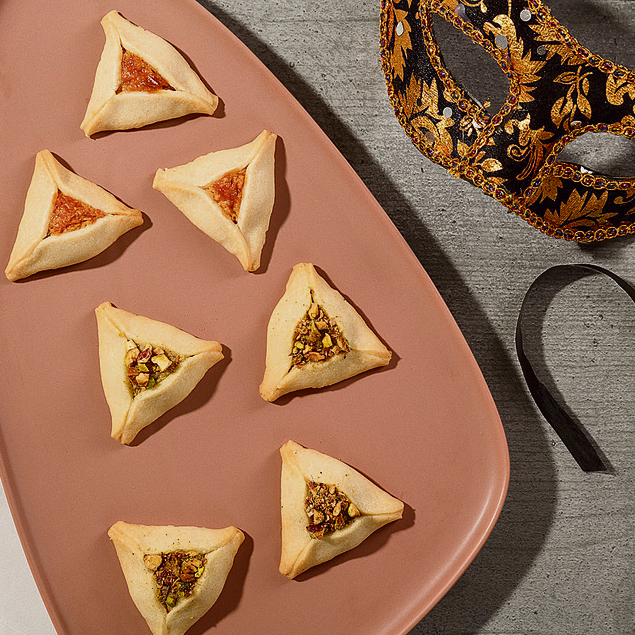 מה חשבנו? אוזני המן שהילדים הכי אהבו. עשויות מבצק שמרים מתובל עם הל במילוי קרם פטיסייר, לוטוס ושברי עוגיות לוטוס מלמעלה.