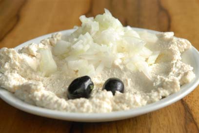 - כשמוכן, טועמים לתיקון תיבול, מקפלים פנימה בצל או שמגישים אותו בערימה (קטנטונת) בצד האיקרה, מקשטים ממעל בזית שחור אחד וחייבים, ממש חייבים, לחם לבן פשוט בפרוסות עבות.