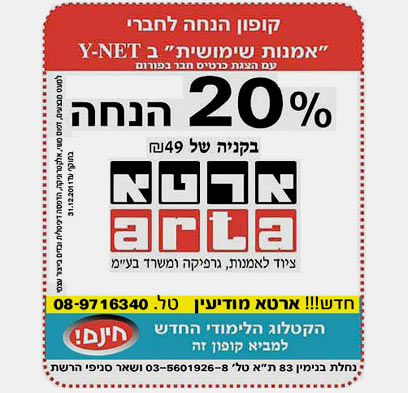 20% הנחה בכל קניה לחברי הפורום בסניפי "ארטא" ברחבי הארץ עם הצגת כרטיס חבר
