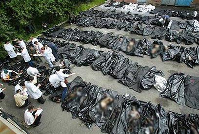 נשיא רוסיה, ולדימיר פוטין, דיבר בנאום לאומה על השלכות החילוץ העקוב מדם בבית הספר: "אנחנו מתמודדים מול טרור בינלאומי נגד רוסיה. זו מלחמה טוטטלית". פוטין אמר שכוחות הביטחון הרוסים יצטרכו "לפעול ברמה שמתאימה לרמת האיום". ברקע: עימות דיפלומטי בין רוסיה לבין האיחוד האירופי, שביקש הסברים לגבי השתלשלות האירועים