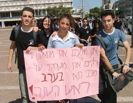 תלמידי תיכון צייטלין מפגינים. (צילום: אבי כהן)
