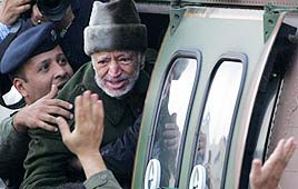 הוא עוד ישוב? לאחר חודשים ארוכים של מצור, יצא הבוקר (יום ו') יו"ר הרשות הפלסטינית, יאסר ערפאת, ממתחם המוקטעה ברמאללה בדרכו לפאריז. לפני שעלה למסוק אמר להמונים במנחת: "אינשאללה, עוד אחזור", ונופף לשלום.