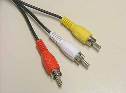 כבל RCA. הצהוב משמש לשידור וידאו, והאחרים לאודיו