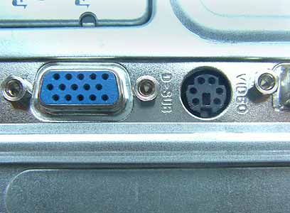 כרטיס מסך עם יציאת S-Video. משמאל החיבור למסך ומימין שקע S-Video