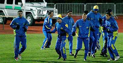 שחקני מכבי ת"א עורכים אימון בכורה במינכן (צילום: רויטרס)