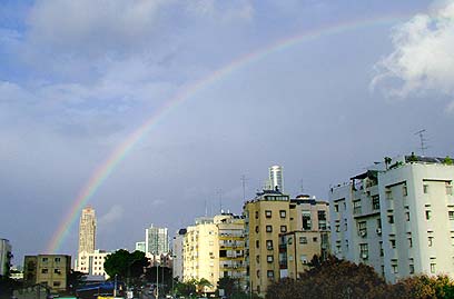 קשת מעל שמי תל אביב. (צילום: תמר אברהם)