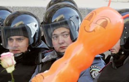 מחוזק מהעידוד הבינלאומי, הוציא יושנקו את תומכיו להפגנות ענק ברחובות קייב. הממשלה מיהרה להעמיד מולם מאות שוטרים, חמושים באלות, וגרמה לעולם כולו לעקוב אחר ההתפתחויות בדאגה, מחשש להתלקחות אלימה.