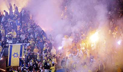 אוהדי מכבי תל אביב. אש ועשן (צילום ארכיון: טל שחר)