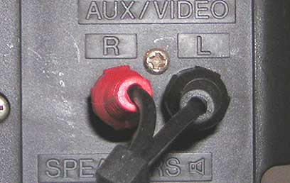 חיבור המחשב למערכת הסטריאו דרך כניסת ה-Aux: מצד אחד חיבור PL קטן, מצד שני חיבור RCA
