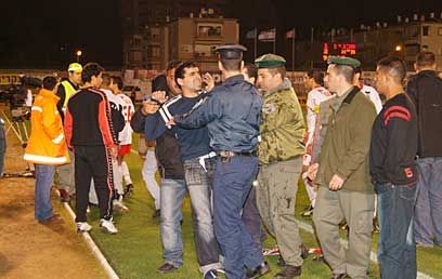 העימות עם האוהדים על כר הדשא (צילום: מאיר כהן)
