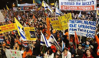 "מרצ והערבים חברו לשרון כדי לעקור יהודים מבתיהם", אמר עוזי לנדאו. "נבטל את רוע הגזירה", קיווה רובי ריבלין. "ועדת חקירה כבר פסלה פעם את שרון, ההיסטוריה תשפוט אותו", ניבא אפי איתם. וברוך מרזל סבור ש"רק מלחמה תביא את הניצחון". כ-150 אלף איש פקדו אמש את "אם כל ההפגנות", וחלקם נשארו גם היום מול הכנסת כדי לזעוק: לא להתנתקות, כן למשאל. בין הכרזות שנשלפו: הלינץ' ברמאללה