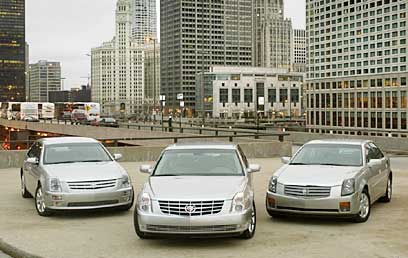 משפחת קאדילק: מימין - CTS, במרכז - DTS, משמאל - STS