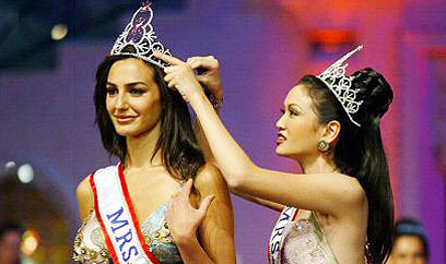 בעוד בעלה מנסה לאושש את קריירת הכדורגל שלו באירופה, הוכתרה סימה בכר בת ה-28 כ'מיס עולם הנשואה', שנערכה בהודו. אילן בכר: "אני מאושר להיות נשוי ליפה בעולם". בכר, שזכתה גם בקטגוריית "הרגליים המדהימות", אמרה: "אני מאושרת שייצגתי את ישראל בכבוד ומקווה שהייתי שגרירה טובה" (צילום - רויטרס)