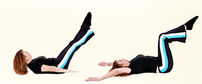 התרגיל: שכבי על הגב, ברכיים כפופות לבטן, ידיים ישרות מעבר לראש. בנשיפה הרימי את הידיים והובילי אותן קדימה עד שיהיו מקבילות לרצפה. במקביל ישרי את הרגליים ל-45 מעלות. הישארי בתנוחה הזו וטפחי קלות עם הידיים על הרצפה. על כל 5 ספירות תשאפי אוויר ועל כל 5 ספירות תנשפי, וכך עד 100.