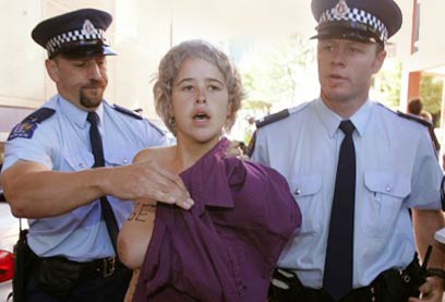 ניו זילנד: מפגינה חשפה את שדיה בפני צ'רלס