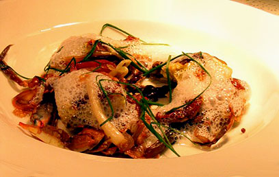 הגראמרסי, כמו תמיד, מלאה. קשה להשיג פה שולחן, רוב האנשים מחכים בין שבועיים לחודש. סיפרו לי שפעם אפשרו לאנשים להזמין עד שלושה חודשים מראש, ועדיין היה קשה להשיג שולחן. הרצפה (floor), כפי שהטבחים מכנים את אזור האורחים של המסעדה, מעוצבת לעילא. על הקיר, קרוב לתקרה, מעל בר גדול ומזמין, תלוי ציור קיר גדול של רוברט קושנר. הבר הארוך משדר עוצמה, ורשימת היינות מעוררת יראה (וקצת עושה לי כאב ראש). הקונספט של המקום הוא מתן אווירה של בית הארחה אמריקאי חמים, במובן ה'אולד פאשן' של המילה. נשמע צנוע, אבל בניו יורק כמו בניו יורק, לא חוסכים באמצעים. מקפידים פה על כל פרט ופרט, החל בתחתיות רגלי הכיסאות (שמנקים ידנית כל יום) וכלה במדי המלצרים (וורסצ'ה). יש במסעדה צוות של שלוש מעצבות פרחים ותפאורה שעובד במשרה מלאה - לדעתי הם מוציאים מאות דולרים ביום על קניית פרחים. באח העצום, אבן החן של המטבח הפתוח של המסעדה, מבעירים על בסיס יומי מאות קילוגרמים של 'וויט אוק' (עץ אלון לבן), עץ ריחני, ולא ממש זול.