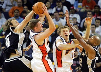 סאן אנטוניו ספארס ניצחה זה הלילה השני ברציפות בהארכה כפולה, הפעם 134:136 את גולדן סטייט ווריירס. טוני פארקר קלע את סל הניצחון 2.9 שניות לסיום, השלים שיא קריירה של 35 נקודות ועצר את הווריירס אחרי שמונה נצחונות רצופים. פארקר הוסיף גם 12 אסיסטים, במשחק שהיה עם מספר הנקודות הגבוה ביותר העונה בליגה. הספארס שיחקו ללא מנו ג'ינובילי, רשו נסטרוביץ' וטים דאנקן החולים אבל גם בלי שלושת שחקני החמישיה הקבועים השיגה הקבוצה ניצחון רביעי בחמישה משחקים. ברוס בוון, רוברט הורי וברנט ברי הוסיפו 17 נקודות כל אחד.