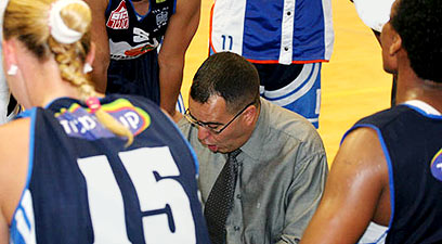 טל נתן מדריך את הרמלאיות, במשחק הראשון בסדרה (צילום: איתן יורמן)
