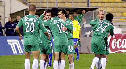 רוברטו קולאוטי חוגג עם הירוקים מול מכבי תל אביב (צילום: רוני שיצר)