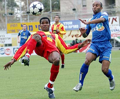 ברוך דגו (מימין) מול אריק אג'יופור מאשדוד (צפריר אביוב)