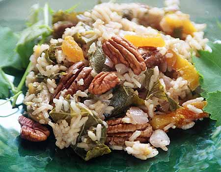 אורז עם פקאנים, משמשים מיובשים ועלי גפן
