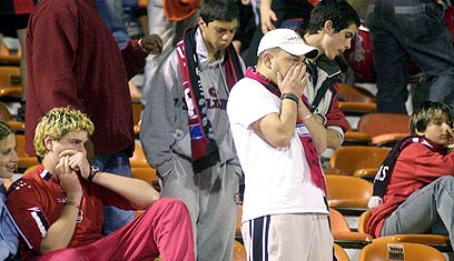 אוהדי הפועל חיפה. מחזיקים אצבעות לאשדוד (צילום: רוני שיצר)