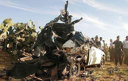 המכונית שנפגעה מירי חיל האוויר (צילום: איי.פי)
