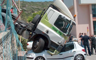 עינת נדיבי, רואת חשבון מבנימינה, לא האמינה כששליח נכנס וסיפר על משאית שפשוט "חונה" על רכבה. היא יצאה החוצה ונדהמה לגלות - השליח צודק. אחרי רגע של הלם ותלונה במשטרה היא מעריכה: "אולי המשאית לקחה סיבוב לא נכון"