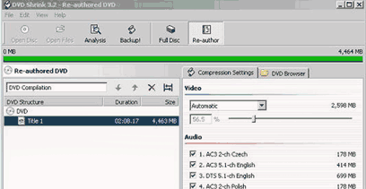 בצילום המסך למטה, מצורפת תוצאת האנליזה של תוכנת DVD Shrink לסרט X-man 2, ניתן לראות שפס הקול של דולבי-דיגיטל 5.1 הוא בנפח 414 מגה בייט לעומת DTS 5.1 אשר תופס נפח 699 מגה בייט (שימו לב שהתרגום הוא עד 2 מגה בייט).