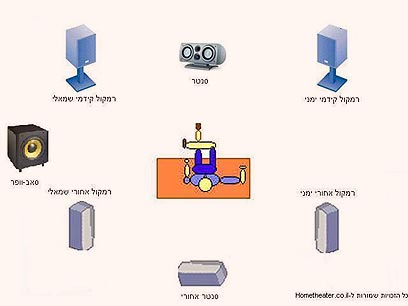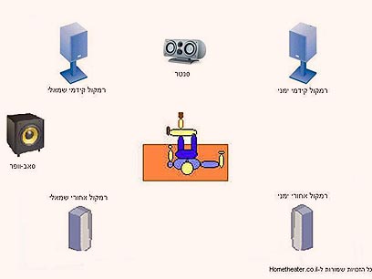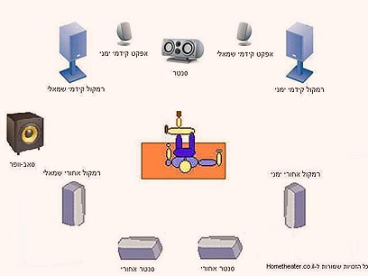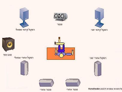 תצורת 7.1 (שני רמקולי הסנטר האחוריים מקבלים אות זהה)