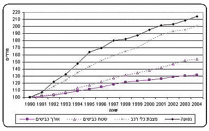 מנתוני הלשכה המרכזית לסטטיסטיקה עולה עוד כי מאז שנת 1990, ממשיכה הצפיפות בכבישים לגדול. בעוד שהנסועה השנתית גדלה ב-114% ביחס לאותה שנה ומצבת כלי הרכב ב-101%, הרי שב-15 השנים האחרונות גדל שטח הכבישים בישראל ב-54% בלבד ואורכם צמח ב-31% בלבד.