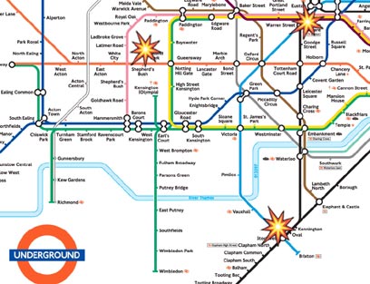 בעקבות הפיצוצים פונו מספר תחנות של הרכבת התחתית - וורן סטריט, אובל ו-שפרד'ס בוש - וגם הבניינים הסמוכים פונו מיושביהם. כמו כן, מספר קווים של הרכבת התחתית הושבתו. במערכת הרכבת התחתית הוכרז "קוד כתום" - הנהגים צוו להחזיר את הרכבות לרציפים.