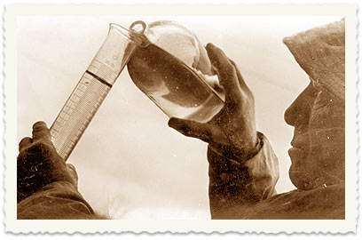 "יום אחד אחרי הצהריים אספו את כל הקיבוץ והודיעו לנו שהיום מגיע לקיבוץ מזג-אויר. יצאנו בתהלוכה לבושים חולצות לבנות אל הדרך, שהיום עובר בה הכביש. מרחוק בכיוון גבת ראינו את העגלה עם יוסף העגלון מתקרבת אלינו. כאשר התקרבה יותר ראינו על העגלה גם את אריה ולידו ארגז גדול עם ריח של אוניות וארצות רחוקות. כאשר הגיעו הקפנו את הארגז ואז אריה שלף מתוכו בזהירות מדחום עם מוט כספית. המדחום היה אמור למדוד את החום בחצר הקיבוץ, כפי שהבנתי מהסבריו המלומדים של אריה. לאחר זאת שלף קופסה גלילית מפח שבתוכה צנצנת גלילית מזכוכית לא-שבירה כאשר לא שוברים אותה, ועל הצנצנת סימונים בקווים אדומים. 'זה מד גשם' אמר אריה".