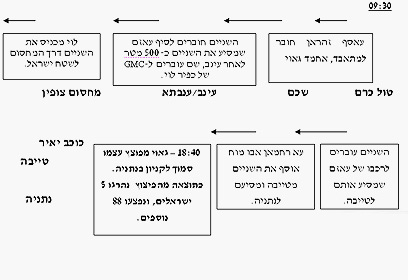 אבו-סעדה הנחה את זהראן להגיע עם המחבל לנתניה. סמוך לענבתא, נכנסו למכוניתו של סיף עזאם מטייבה, שסיפר בחקירתו שבשבעת החודשים האחרונים נהג להסיע שוהים בלתי חוקיים עם כפיר לוי דרך אחד המחסומים ליד טול כרם.