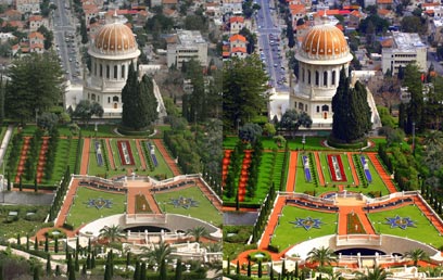 התמונה המקורית (משמאל) דהויה. חידוד, שיפור צבעים והוספת צבע ב-Saturation החייה את התמונה (חיפה, 2005)