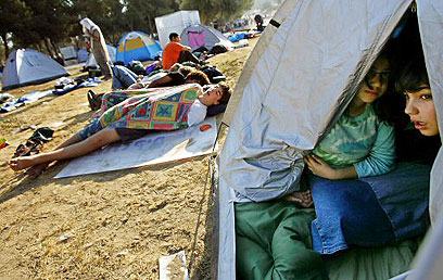 מפגינים באוהלים ועל הדשא (צילום: איי.אף.פי)