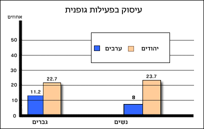גורם נוסף שיכול לסייע בשמירה על בריאות טובה הוא כושר גופני. אחוז העוסקים בפעילות גופנית באופן סדיר נמוך יותר בקרב האוכלוסייה הערבית לעומת האוכלוסייה היהודית. פי 3 בקרב נשים ופי 2 בקרב גברים.