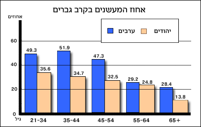 מסקר בריאות לאומי שנערך בשנים 2003-2004 עולה שאחוז הגברים המעשנים גבוה פי 1.6 יחסית ליהודים ומגיע לכ-50% בקרב גברים בני 21-44. בקרב הגברים היהודים שיעור המעשנים עומד על 28.5%.