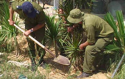 חיילים עוקרים דקלים בדוגית (צילום: חנן גרינברג)