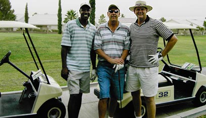 נלסון עם מייקל "משוגע" קארטר וקארל איימוס. שומרים על קשר גם בחו"ל