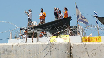 מתבצרים על גג שירת הים (צילום: אחיה ראב"ד)