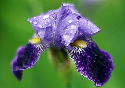 צמצם פתוח יצר עומק שדה צר, שהשאיר רק את האירוס בפוקוס עם רקע ירוק מטושטש. גרמניה, 2001