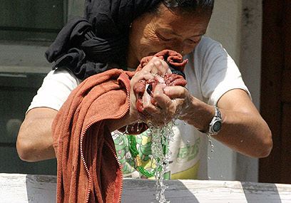 זמן חשיפה קצר, של 1/1000 שניות, הפיק תמונה בה רואים כל טיפה סחוטה. נפאל, 2004